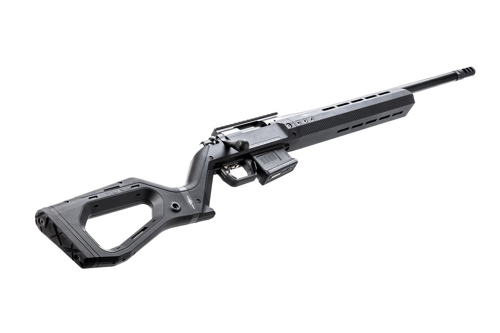 Součástí dodávky jsou dvě rozpěrky pro nastavení délky pažby pro personalizací pažby. Navíc má Hera H7 polymerovou opěrku tváře a 5 ranný zásobník kompatibilní s AICS z výroby Hera Arms.