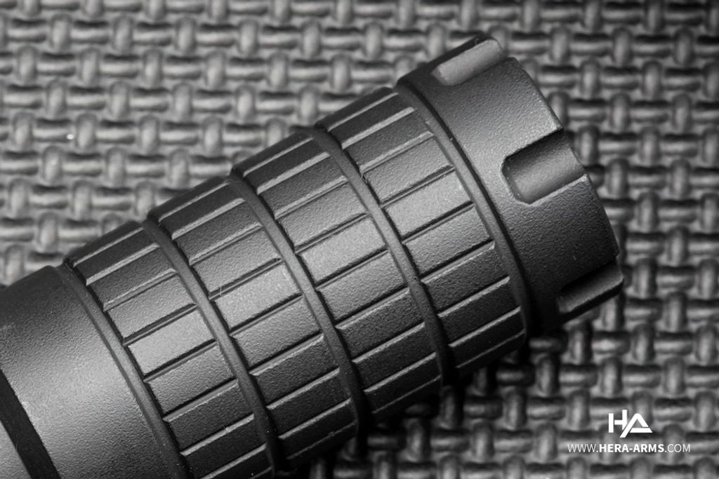 HERA ARMS kompenzátor, je vyroben z titanu a je tak lehký a odolává vysokým teplotám. Kompenzátor používá lineární systém komor (12 lin. komor). Díky to mu je nejen snížen zpětný ráz ale také snížená hlučnost a výšleh při výstřelu. Kompenzátor je vhodný pro ráže .223/5,56.