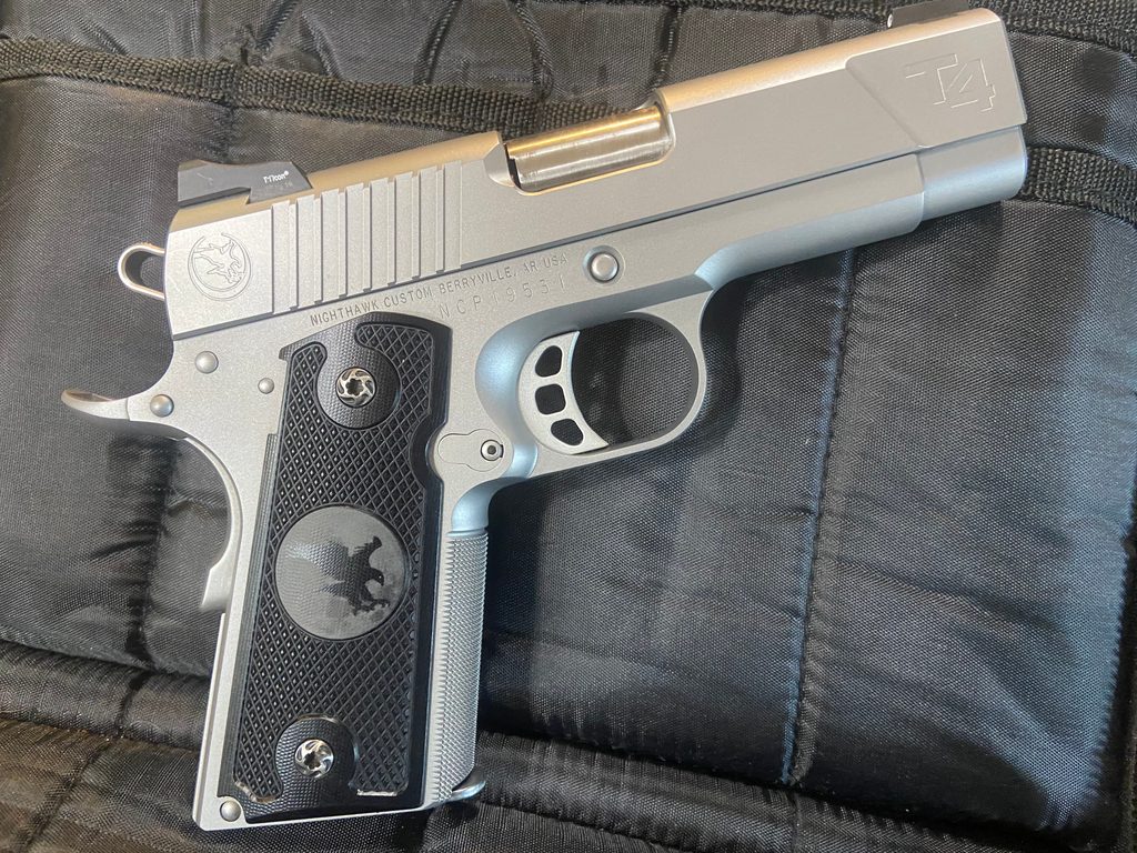 T4 byla navržena pro skryté nošení. Je to nejlepší z obou světů, pokud jde o ovladatelnost při střelbě a kapacitu zásobníku u pistole 1911. T4 obsahuje některé z nejvíce evolučních funkcí nabízených společností Nighthawk Custom. T4 připomíná populární T3, ale s 3,8” hlavní a v celkové platformě Officer. Při plánování nové pistole byla nejdůležitější spolehlivost, a proto výrobce použil hlaveň o dálce 3,8". Systém Nighthawk Everlast Recoil byl navíc upraven tak, aby se vešel do menšího rámu T4, čímž se snížil zpětný ráz a zkrátila se doba návratu závěru do uzamčené pozice po výstřelu. Rám je ztenčený stejně jako populární Lady Hawk od Nighthawk Custom. Hlaveň je korunková a v rovině se závěrem. Na vnější straně přední část závěru jsou výřezy navržené pro snížení hmotnosti. Zužují se směrem ke korunkové hlavni a dodávají T4 jedinečný vzhled. Střenky jsou stejné jako u T3 a jsou ztenčené pro menší objem.