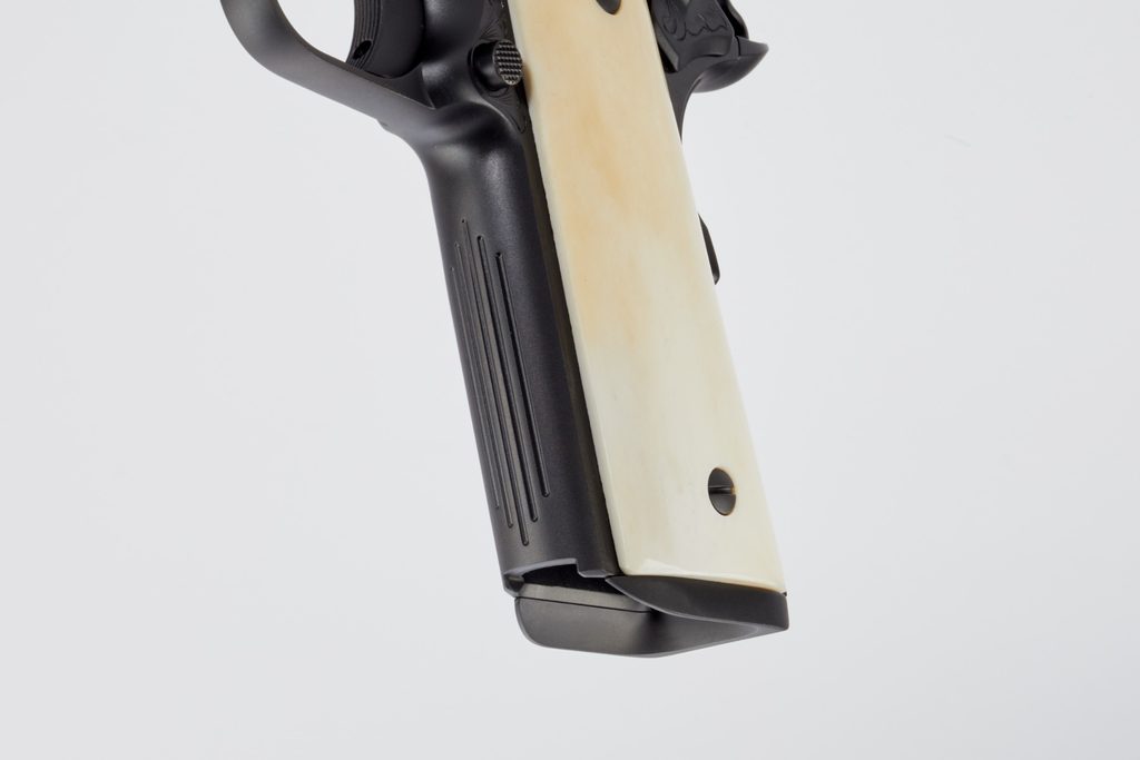 Nighthawk Custom VIP Black je ručně vyrobený a rytý pro ty, kteří ocení vkusné množství ručního rytí na zbrani. Tato pistole 1911 je spojena s černým diamantovým povlakem, vysoce kvalitní konstrukcí a povrchovou úpravou Nighthawk Custom. Umělecké dílo prezentační kvality s odolnou povrchovou úpravou, kterou lze nosit a používat denně. Jako jeden z našich nejexkluzivnějších modelů je VIP Black postaven jako skutečné dědictví. Tato pistole je pečlivě a vkusně ručně rytá mistrem rytcem. VIP Black je také vybavena muškou ze 14karátového zlata a střenkami z žirafí kosti. Aby byl tento skutečně elitní balíček kompletní, VIP Black je dodáván v prezentačním pouzdře z tvrdého ořechového dřeva.