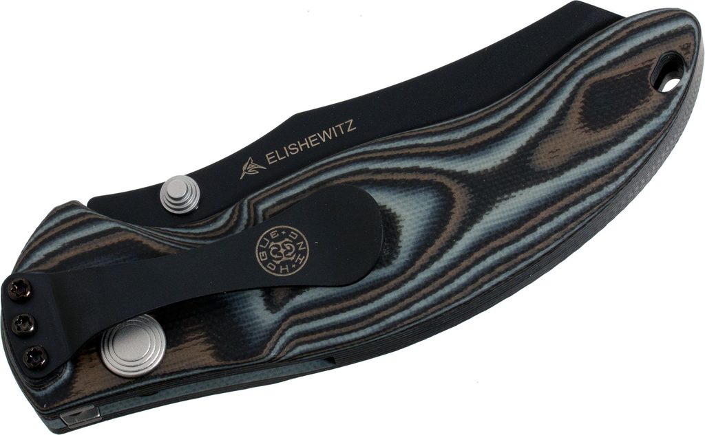 Zavírací nůž Hogue EX-04 3,5" Wahrncliffe G-10 Gray Lava, který navrhnul Allen Elishewitz. Čepel Wahrncliffe z kryogenicky ošetřené nerezové oceli 154CM (tvrdost 57-59 HRC) s povrchovou úpravou černý cerakote. Zámek PushButton s manuální pojistkou. Rukojeť G-10 G-Mascus s texturou Mini Piranha. Pocket clip je vpravo, střenka obsahuje díru pro lanyard. Celková délka nože 203 mm, délka čepele 89 mm a délka rukojeti 117 mm. Vyrobeno v USA.