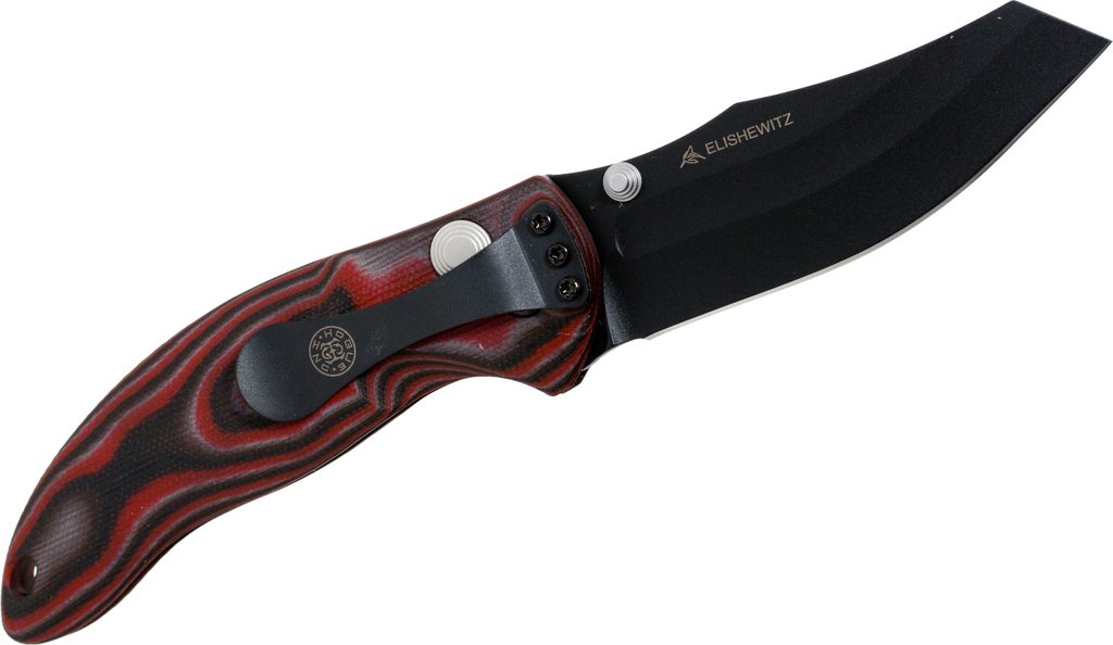 Zavírací nůž Hogue EX-04 3,5" Wahrncliffe G-10 Red Lava, který navrhnul Allen Elishewitz. Čepel Wahrncliffe z kryogenicky ošetřené nerezové oceli 154CM (tvrdost 57-59 HRC) s povrchovou úpravou černý cerakote. Zámek PushButton s manuální pojistkou. Rukojeť G-10 G-Mascus s texturou Mini Piranha. Pocket clip je vpravo, střenka obsahuje díru pro lanyard. Celková délka nože 203 mm, délka čepele 89 mm a délka rukojeti 117 mm. Vyrobeno v USA.