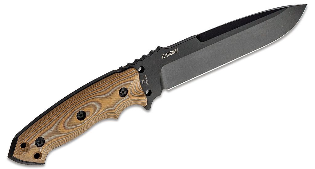 Nůž Hogue EX-F01 Drop Point Blade 7" G10 G-Mascus Black s pevnou čepelí o délce 178 mm a tloušťce 6,35 mm. Čepel je z kryogenicky ošetřené oceli A2. G10 střenky v FDE (pískovém) G-Mascus provedení se dvěma průvlaky pro lanyard. Součástí balení je MOLLE kompatibilní černý nylonový obal s Mil-spec a ochranou vložkou. Vyrobeno v USA.