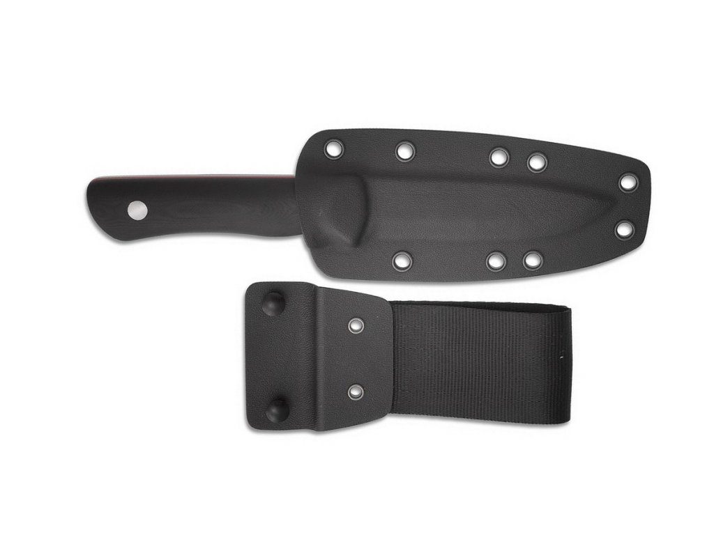 Nůž Real Steel Bushcraft III Convex je jak už název napovídá navržen tak, aby vyhovoval bushcraftovým aktivitám. Díky svému jednoduchému tvaru je nůž vhodný jak na práci se dřevem, tak i na porcování potravin. Leštěná full-tang čepel je z oceli D2 (58-60HRC) a je dlouhá 105mm . Bezpečnou práci s nožem lze zajistit průvlakem jistící šňůry v zadní části rukojeti.  Rukojeť je příjemně tvarována, vyrobena z materiálu G10, vypodloženého červeným G10 o tloušťce 1mm. Celková délka nože je 218mm. Součástí balení je kydexové pouzdro v barvě rukojeti s opaskovým klipem.