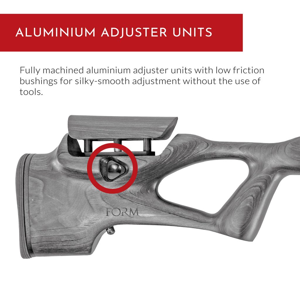 Vysoce ergonomický oboustranný design s pistolovou rukojetí a neklouzavým povrchem. Tato pažba je vhodná pro praváka i leváka a je ideální volbou pro většinu loveckých a sportovních použití.