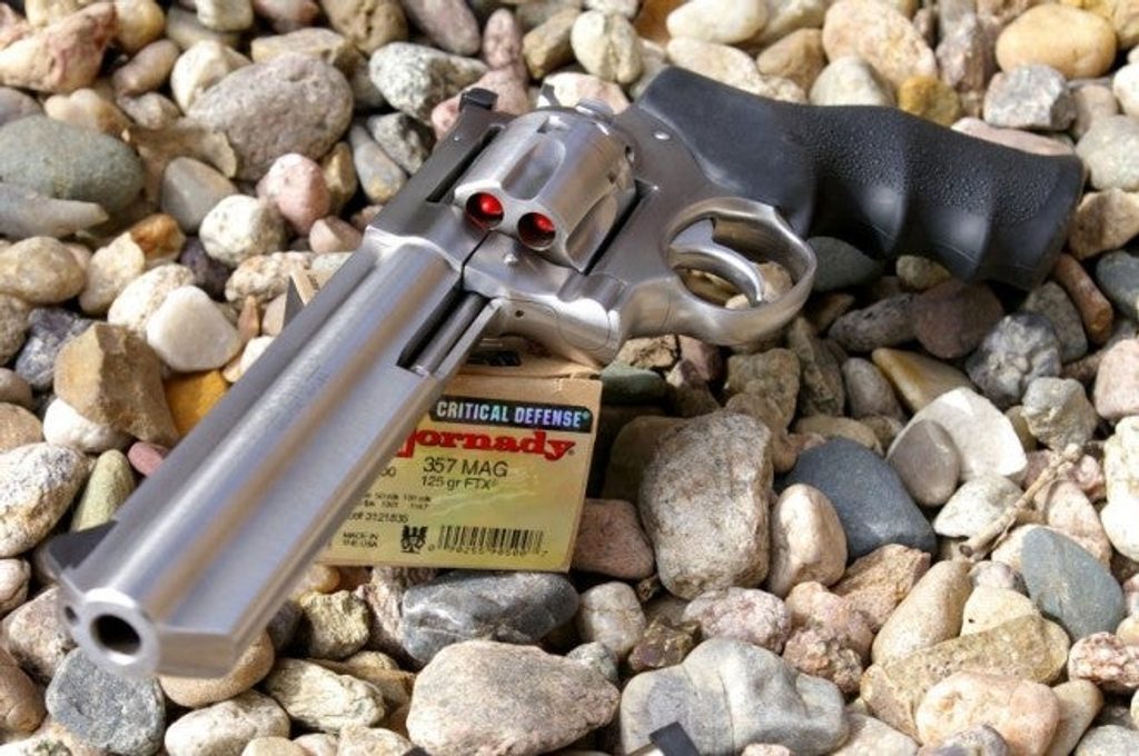 Revolver Ruger GP/KGP 161. Kvalitní ocelové provedení těla s pohodlnou kombinací polstrování a dřeva umožnuje střelbu po delší dobu bez ztráty pohodlí. Válec má kapacitu na sedm nábojů. Revolver pojme náboje ráže .375 Mag i .38 Special.