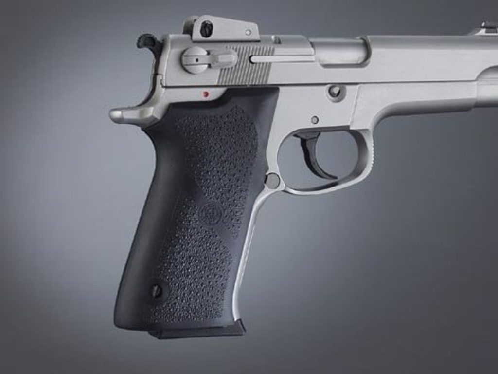 - Hogue tvaruje své syntetické rukojeti tak aby odpovídaly ortopedickému tvaru ruky s vybráním pro prsty a příjemným zdrsněním.