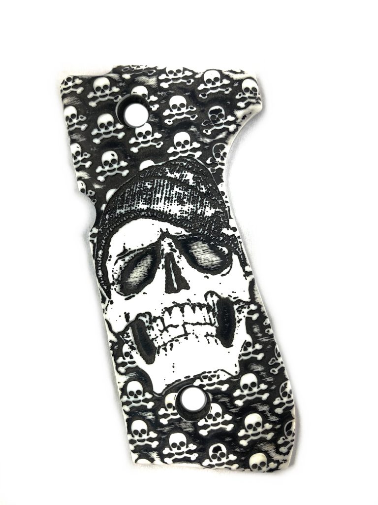 Střenky tureckého výrobce KSD pro pistole , bílý akrylát, lebky.