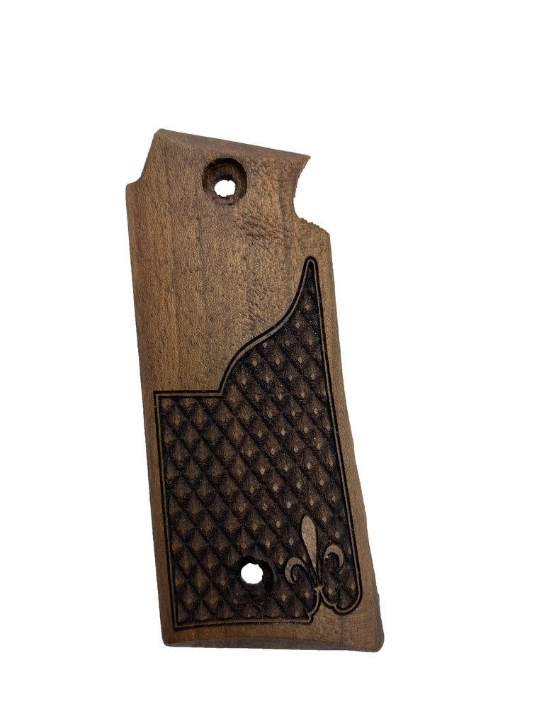 KSD rukojetí z tvrdého dřeva obsahuje oslnivou řadu exotických dřevin a vzorů, z nichž každá je jedinečným uměleckým dílem a jemným řemeslným zpracováním. Každá rukojeť je upravena dle požadavků: hladký leštěný povrch nebo zdrsněný povrch. Vaše rukojeť bude vyrobena z ušlechtilého tvrdého dřeva, které má vytvořit přirozené spojení mezi vámi a vaší oblíbenou zbraní.