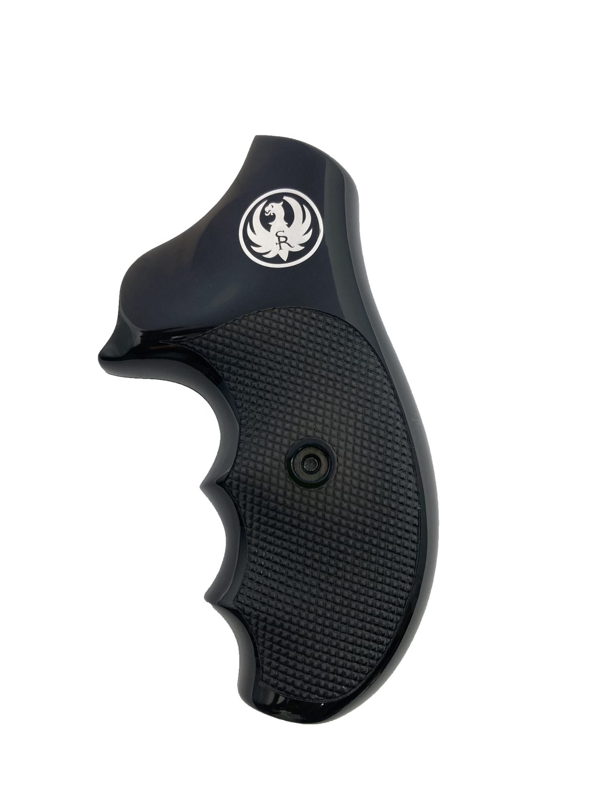Střenky tureckého výrobce KSD pro revolvery Ruger SP 101 černý akrylát se stříbrným logem.