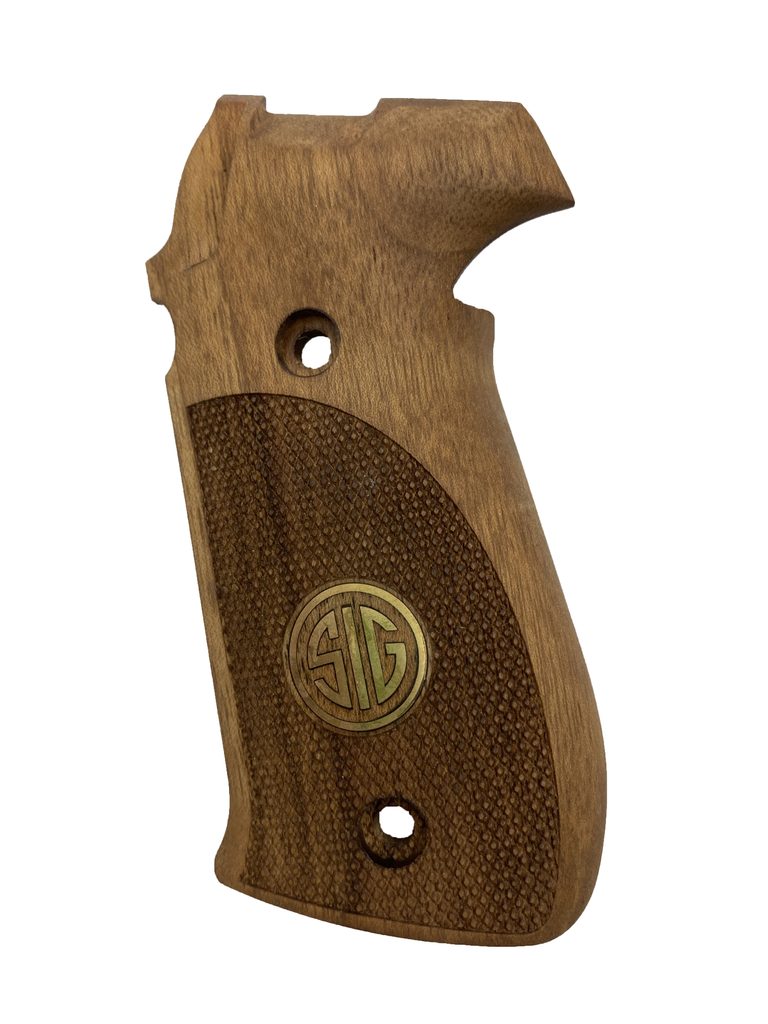 Střenky tureckého výrobce KSD pro pistole Sig Sauer P220 turecký ořech s bronzovým logem.