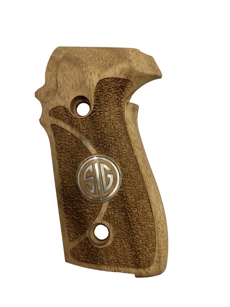 Střenky tureckého výrobce KSD pro pistole Sig Sauer P228/P229 v provedení turecký ořech se stříbrným logem.