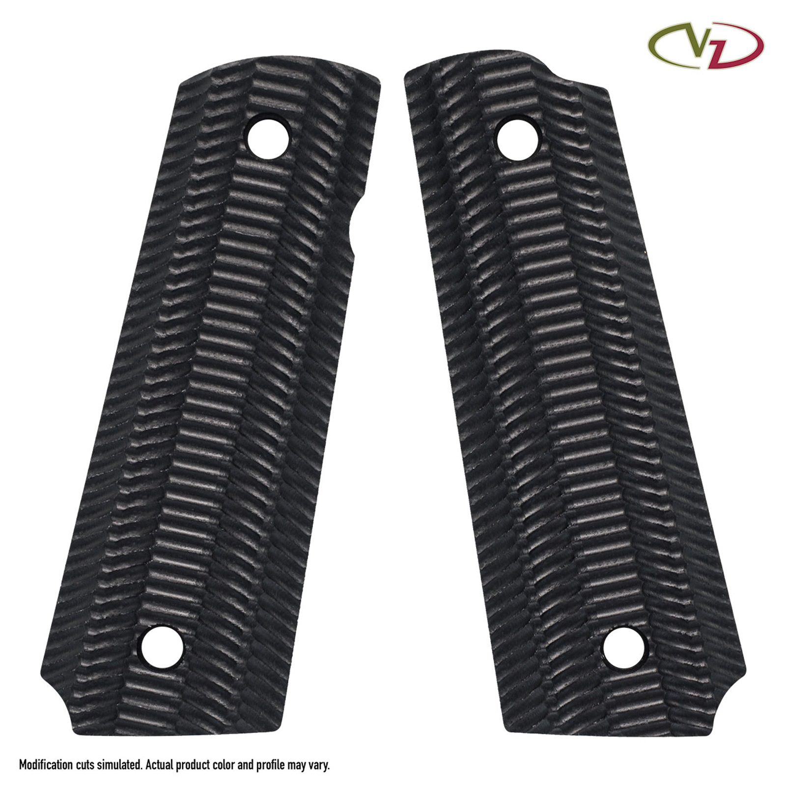 Střenky světoznámé společnosti VZ Grips pro pistole typu 1911 Government & Commander (full size). Materiál G10, barva Black (černá). Zdrsnění je střední úrovně tedy citelné při úchopu, ale ne nepříjemné. Toto zdrsnění napodobující hřbet aligátora bylo původně navrženo pro Precision Weapons Section of the U.S. Marine Corps.