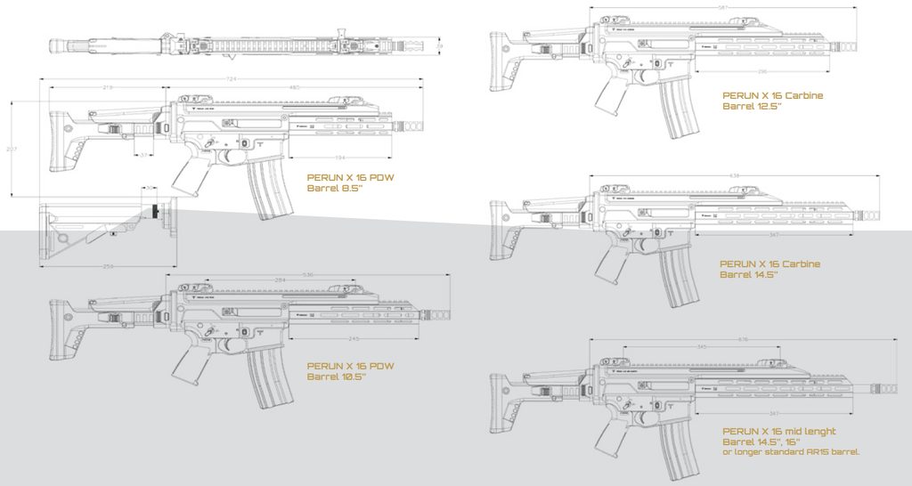 Kvalitní a inovativní Slovinská firma Tinck Arms Perun-X16. Perun-X16 je novou platformou na trhu s novátorským pojetím (celosvětově patentovaný systém), který je charakterizován spolehlivostí a jednoduchostí rozborky pro čištění. Zbraň částečně vychází ze systému AR-15, ale spíše jen využívá možnosti doplňků, které jsou shodné s platformou AR-15 (pistolová rukojeť, pažba, spoušť, pojistka, výhoz zásobníku, zásobníky). Perun X-16 tak nabízí vysokou úroveň modularity a kompatibility se systémem, který nabízí širokou škálu doplňků. Tato zbraň je vhodná jak pro sportovní a hoby střelce tak pro ozbrojené složky.