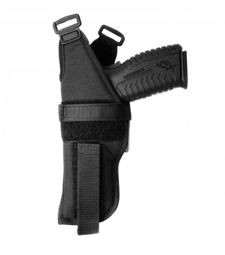 Pouzdro je vhodné pro nošení větších zbraní. Tvar chrání celé tělo zbraně. Zajištění páskem se suchým zipem. Při nošení je pouzdro při těle, uchycení na opasek zamezuje kývání zábranu při pohybu.
