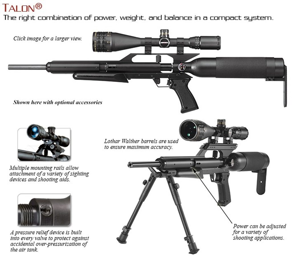 Výkon PCP větrovky Talon je nastavitelný a zbraň je určena pro přesnou střelbu, při nízké hmotnosti s maximální jednoduchostí a efektivitou.