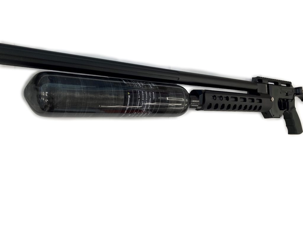 Plnění kartuše je klasicky quickfillem až do tlaku 300 BAR. Hlaveň má délku 700 mm a je zakončená moderátorem hluku se závitem 1/2 UNFx20.